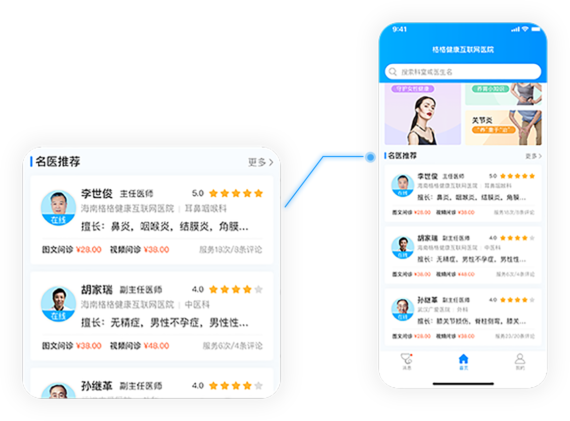 汇聚三甲名医,覆盖10大科室,7*24h全天侯线上问诊服务,提供专业医生线上做诊,秒级响应,守护您及家人健康。